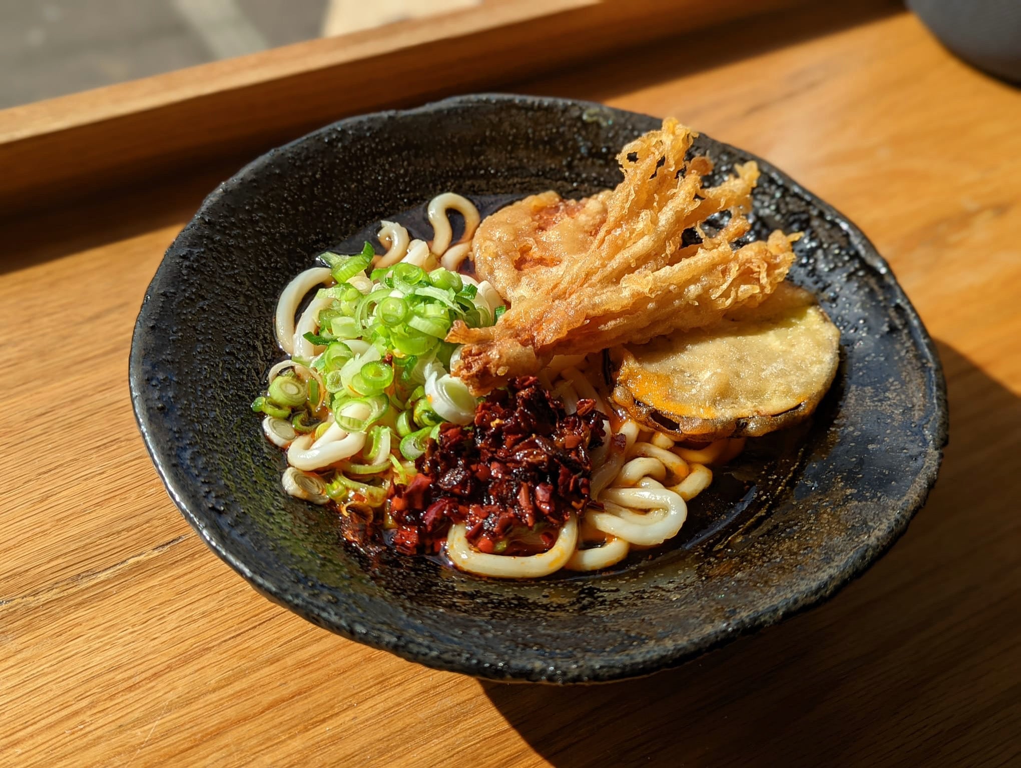 Join us for brunch. Our daytime menu features Japanese and Chinese inspired dishes such as udon and gyoza - perfect paired with one of our teas. You'll also find a variety of vegan and gluten free options. Our kitchen is also nut-free.